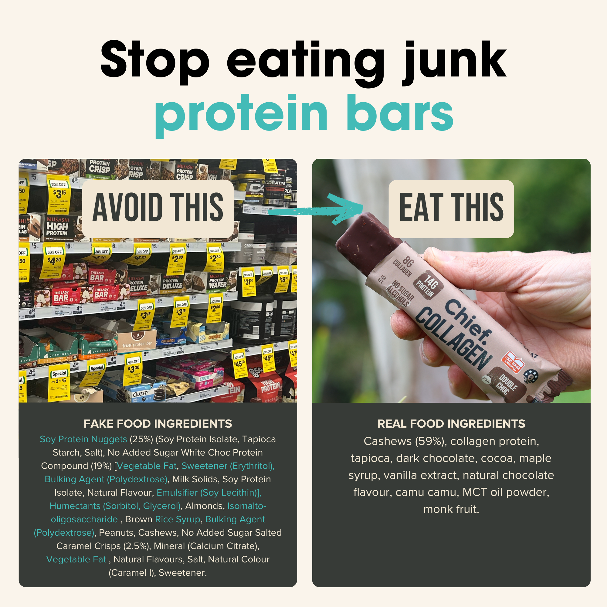 Chief Collagen bars are an very healthy and natural snack that can be enjoyed daily by anyone. They're also great pre or post workout.
